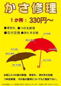靴ご愛用の傘は、靴・カバン・アクセサリーと同じく大切なアイテムですね!傘修理の事なら是非ご相談ください。
